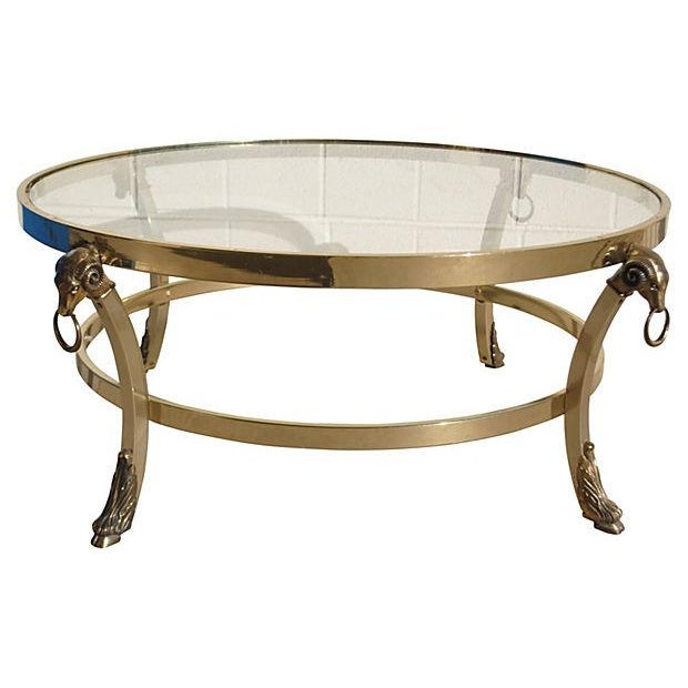 A Pair Rams Head Coffee Table Bases at 1stdibs from a.1stdibscdn.com Marble is 1/2 inch thick. The heads are patinated brass. It has two circular glass tiers, set in a brass frame that has a ram's head at the top of each saber curved leg and a hoof design at the bottom of each. The coffee table is in a very good condition and is a real eye catcher in every room. Great coffee comes in many different forms and experiences. We do have two pairs of these ram heads so one giant table can be made with a large glass top or two normal size coffee tables like pict. Maison jansen brass & glass rams head coffee or cocktail table. Both have glass tops and a shelf below.