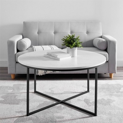 36 inches large round coffee table marble grain and black modern wood cocktail table easy to assemble.