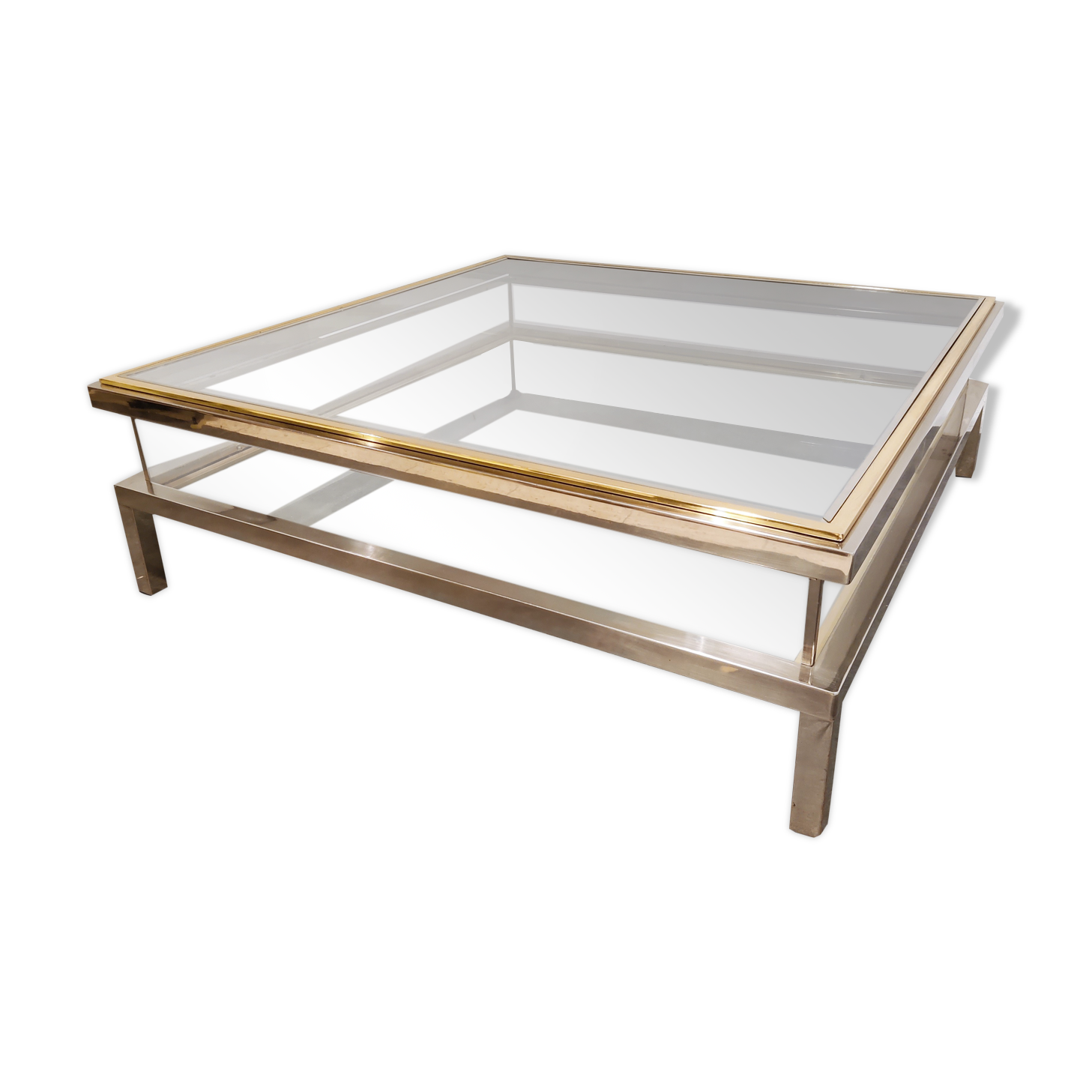 Huge maison jansen sliding top coffee table in brass and chrome.